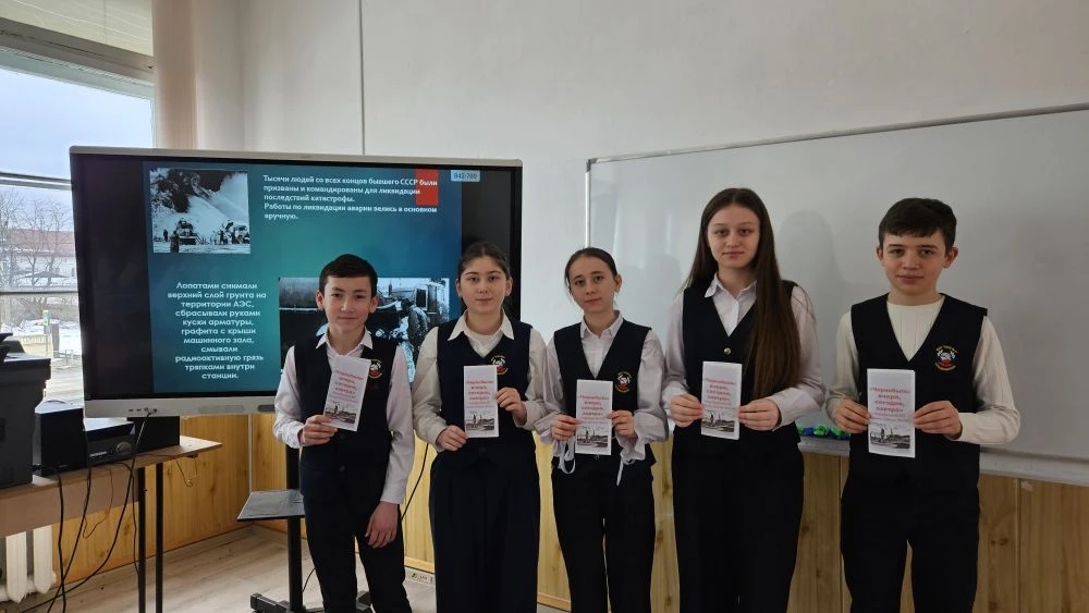 🟢Восьмиклассники очень серьезно отнеслись к теме. Они увлеченно, затаив дыхание, смотрели документальный фильм о тех страшных событиях, о подвиге ликвидаторов и о том, как изменился мир после той апрельской ночи. Чтобы закрепить полученные знания и сохранить память, в конце урока каждый ученик получил информационный буклет.
