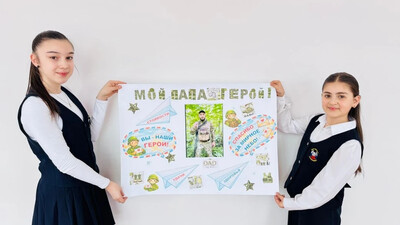 🎨 Калажокова Асия изобразила на плакате своего папу. Её работа посвящена отцу — участнику специальной военной операции. Это не просто рисунок, а символ мужества, чести и настоящей мужской силы. Мы гордимся нашими героями!